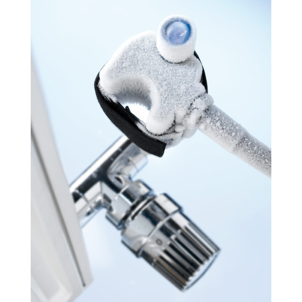 Obzvlášť kompaktné zmrazovacie hlavy s geometricky špeciálne vytvorenými priehlbinami pre nasadenie na rôzne priemery trubiek (Patent EP 1 108 9 44, Patent US 6,434,9 52). Výnimočne úzke, len 50 mm široké. Použiteľné kdekoľvek, aj na úzkych miestach. Všetky veľkosti rúr od Ø ¼ -1 "príp. Ø 15-35 mm možno zmrazovať s jednou zmrazovacou hlavou. Zmrazovacia vložky pre zvyšný pracovný rozsah do Ø 2 ", 60 mm. Upínacie pásky s uzáverom na báze suchého zipsu pre jednoduchú a rýchlu montáž zmrazovacích hláv na trúbku, bez náradia.